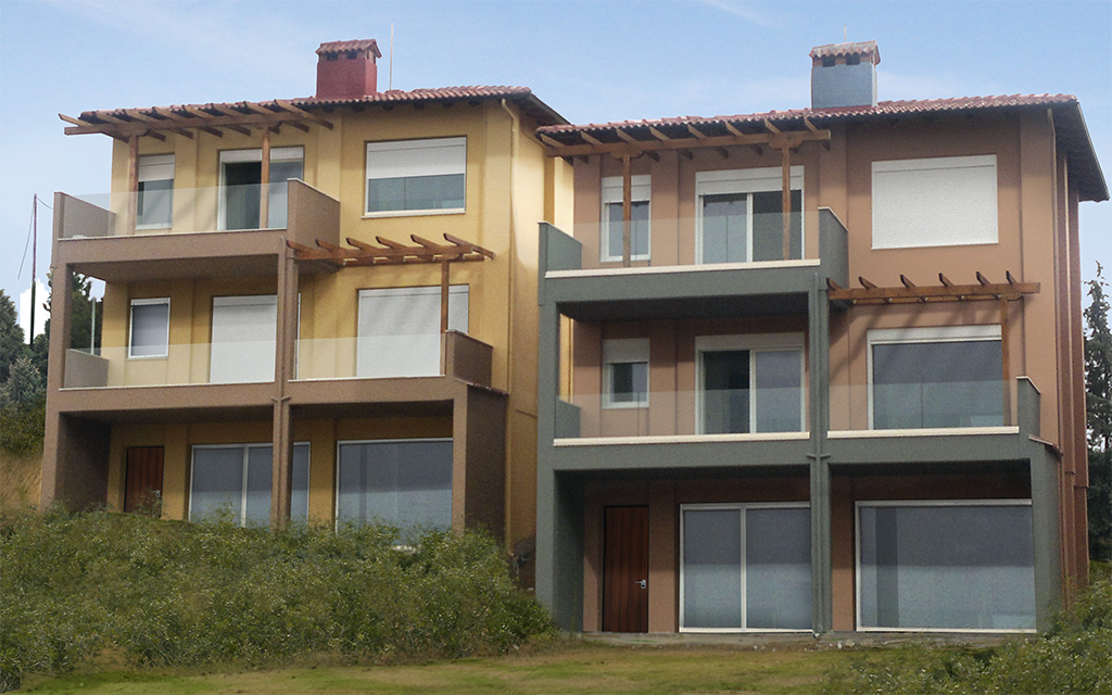 Are situated in a quiet, sparsely populated and safe, suburban area, on a hillside. They are just 12 km away from downtown Thessaloniki possessing, at the same time, an enchanting view towards the Thermaikos Gulf and the city of Thessaloniki.